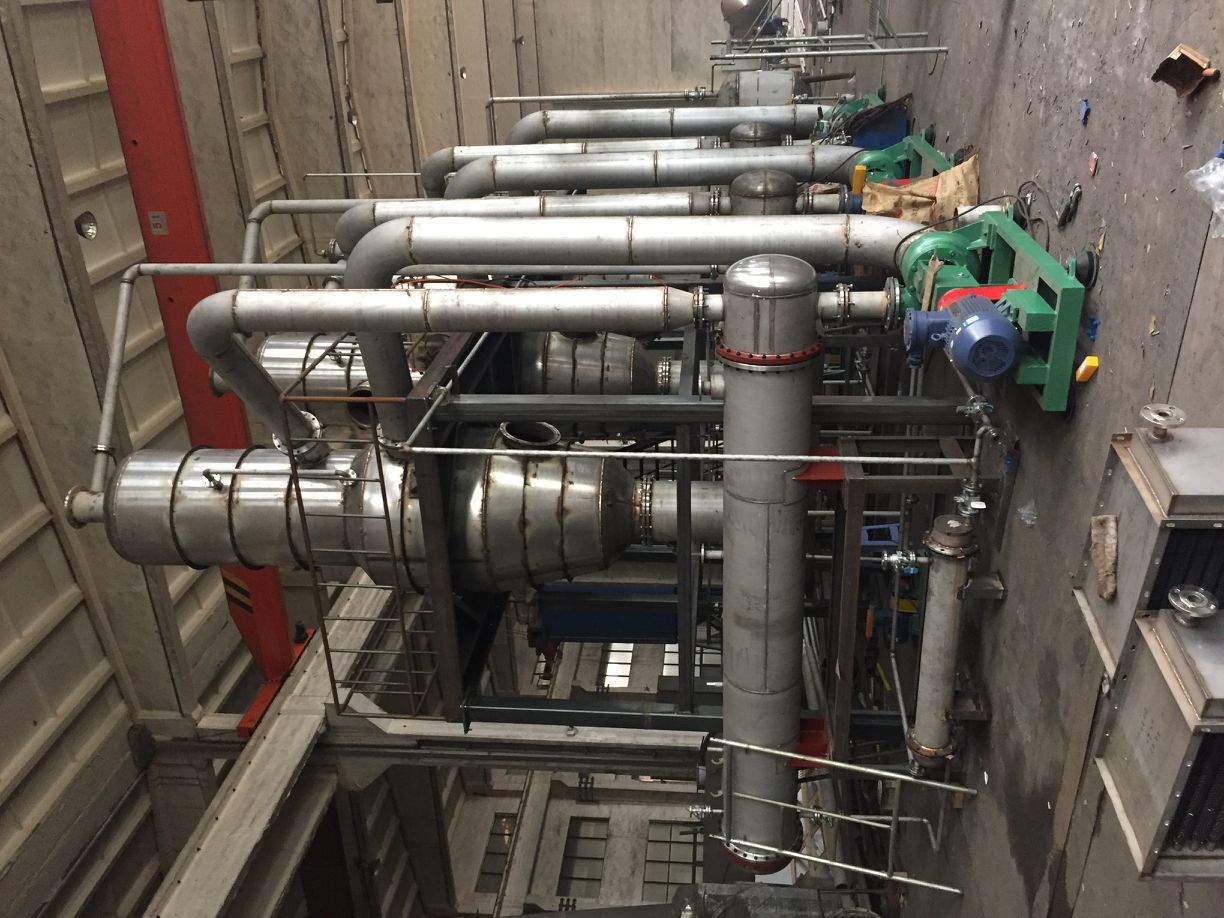 1.設備整個加熱系統由于蒸汽加熱均勻、料液為液膜式流動蒸發,所以具有傳熱效率高加熱時間短等主要特點。如再配置熱壓泵,更具節能降耗,蒸汽耗量低等優點。